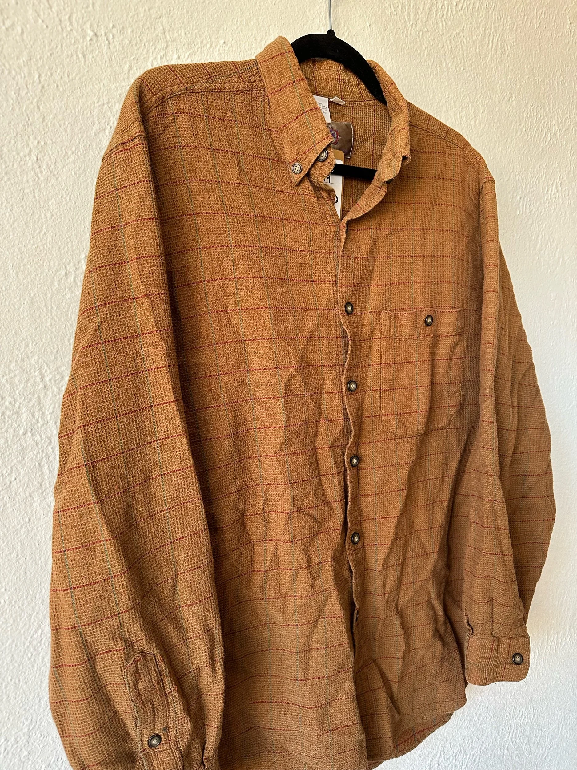 All › 90s Waffle Knit Button-down Shirt (L/XL) Image 1 of 5 Image 2 of 5 Image 3 of 5 Image 4 of 5 Image 5 of 5 90s Waffle Knit Button-down Shirt (L/XL) $20.00 Material: 100% cottonSize: LMeasurements: 23” ptp, 29” longCondition: excellent pre-owned condition - no flaws noted. Purchase Added! Material: 100% cottonSize: LMeasurements: 23” ptp, 29” longCondition: excellent pre-owned condition - no flaws noted. Reviews Reviewer Name Review Date Star Rating Description Posted on Etsy Product Show More You Might Also Like Quick View Vintage Leaf Pattern Pullover Sweater (S/M) $24.00 Quick View 90s Seafoam Knit Tunic Sweater (L) $20.00 Quick View Modern Anthropologie Open Side Turtleneck Vest (OS) $20.00 Quick View Acrylic Mock Neck Sweater (M/L) $14.00 Quick View Old Navy Soft Quarter Zip Sweater (S-L) $20.00